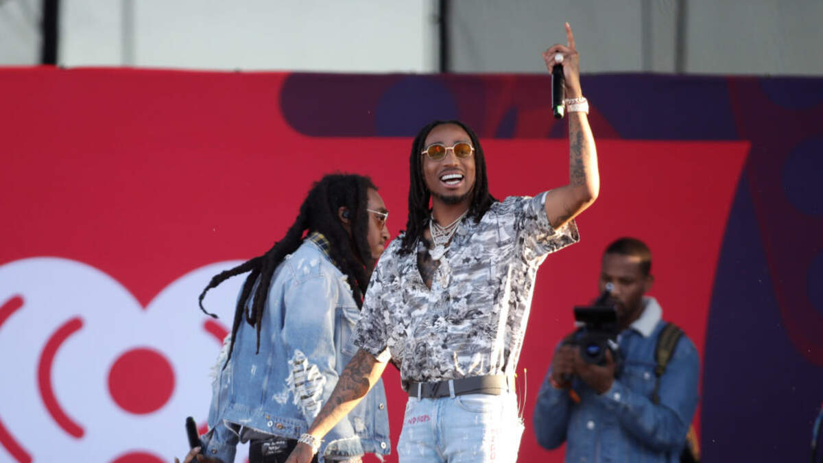 LAS VEGAS, NV - SEPTEMBER 23: Takeoff (L) and Quavo of Migos perform onstage during the Daytime Village Presented by Capital One at the 2017 iHeartRadio Music Festival at the Las Vegas Village on September 23, 2017 in Las Vegas, Nevada. (Photo by Isaac Brekken/Getty Images for iHeartMedia)