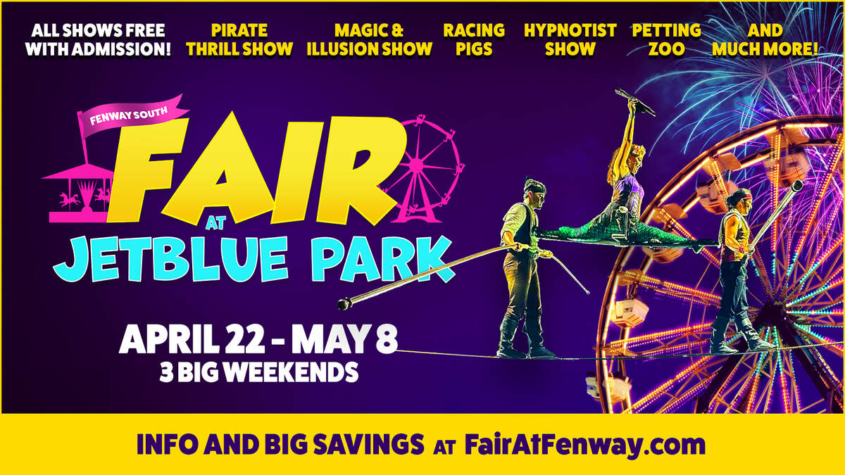 The Spring Fair at Fenway returns to JetBlue Park for THREE BIG WEEKENDS, April 22 - May 8! All the Rides, Shows, Games, and Food you love! See you at The Spring Fair at Fenway. More details www.fairatfenway.com!